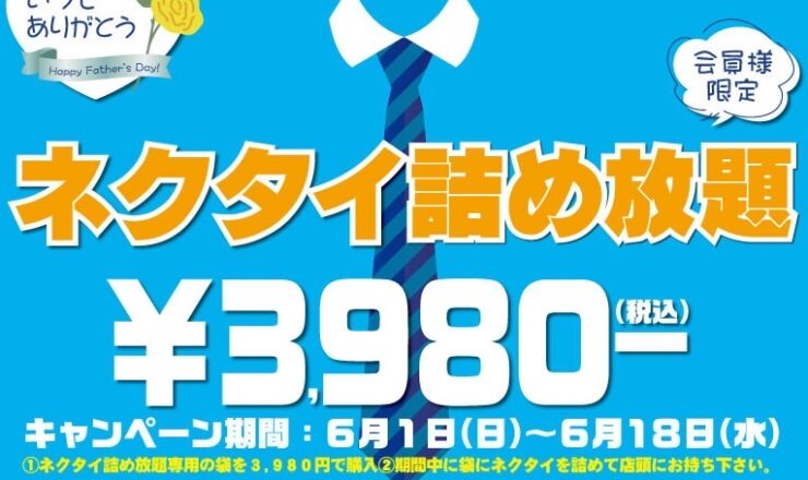 お久しぶりです☺︎ 6月始まりましたね🐸☔️ 今シロヤクリーニングではネクタイ詰め放題キャ...