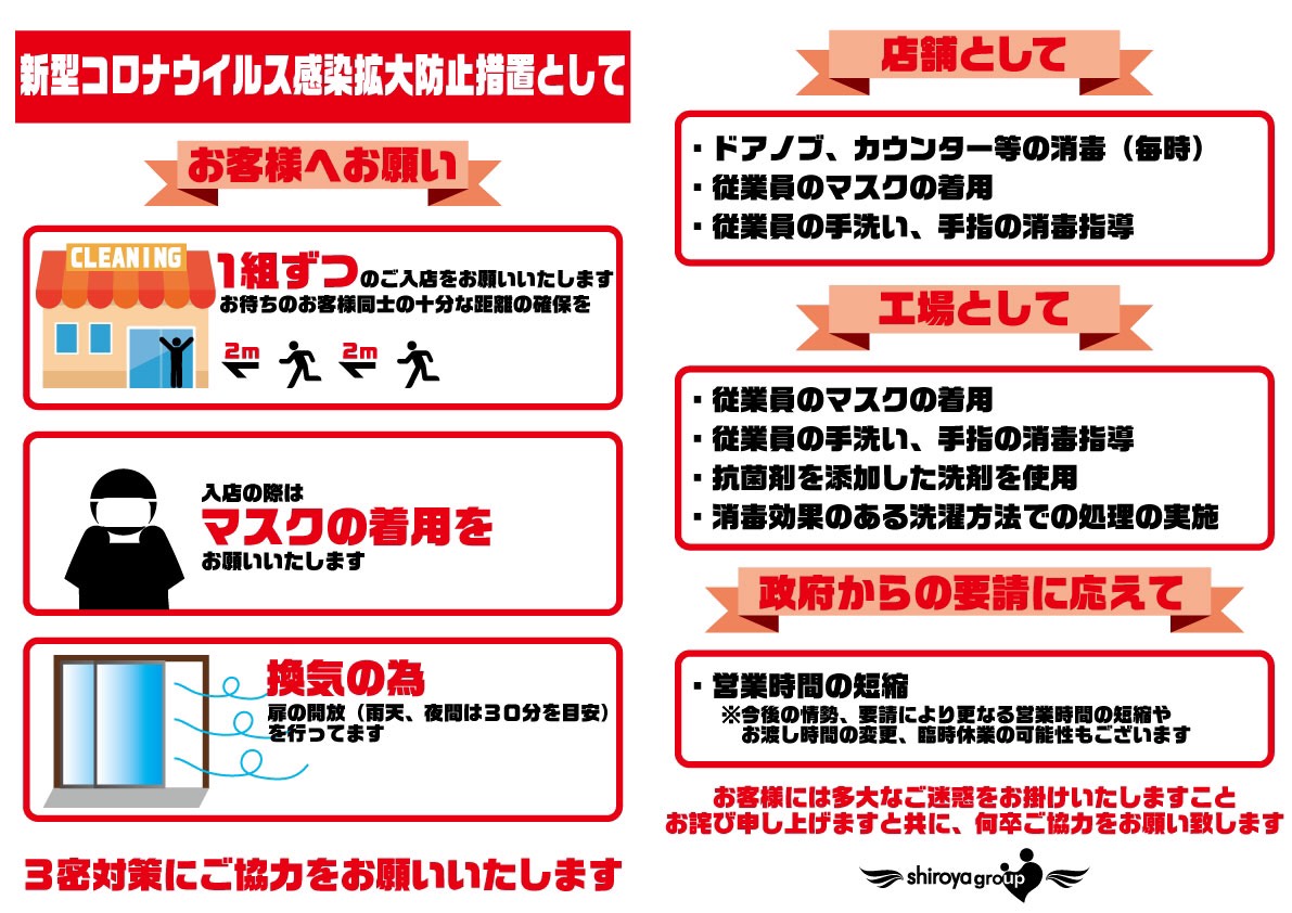 弊社新型コロナウィルスへの対策についてのお知らせ