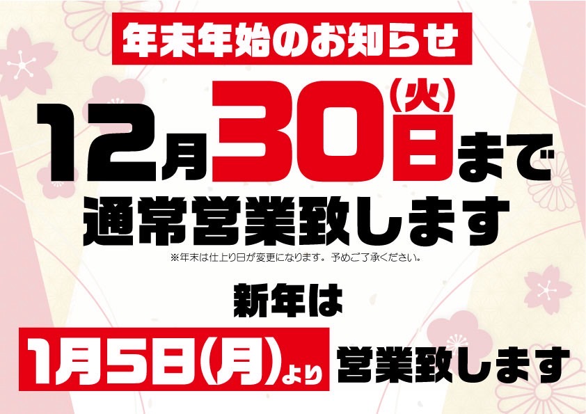 年末年始のお知らせ